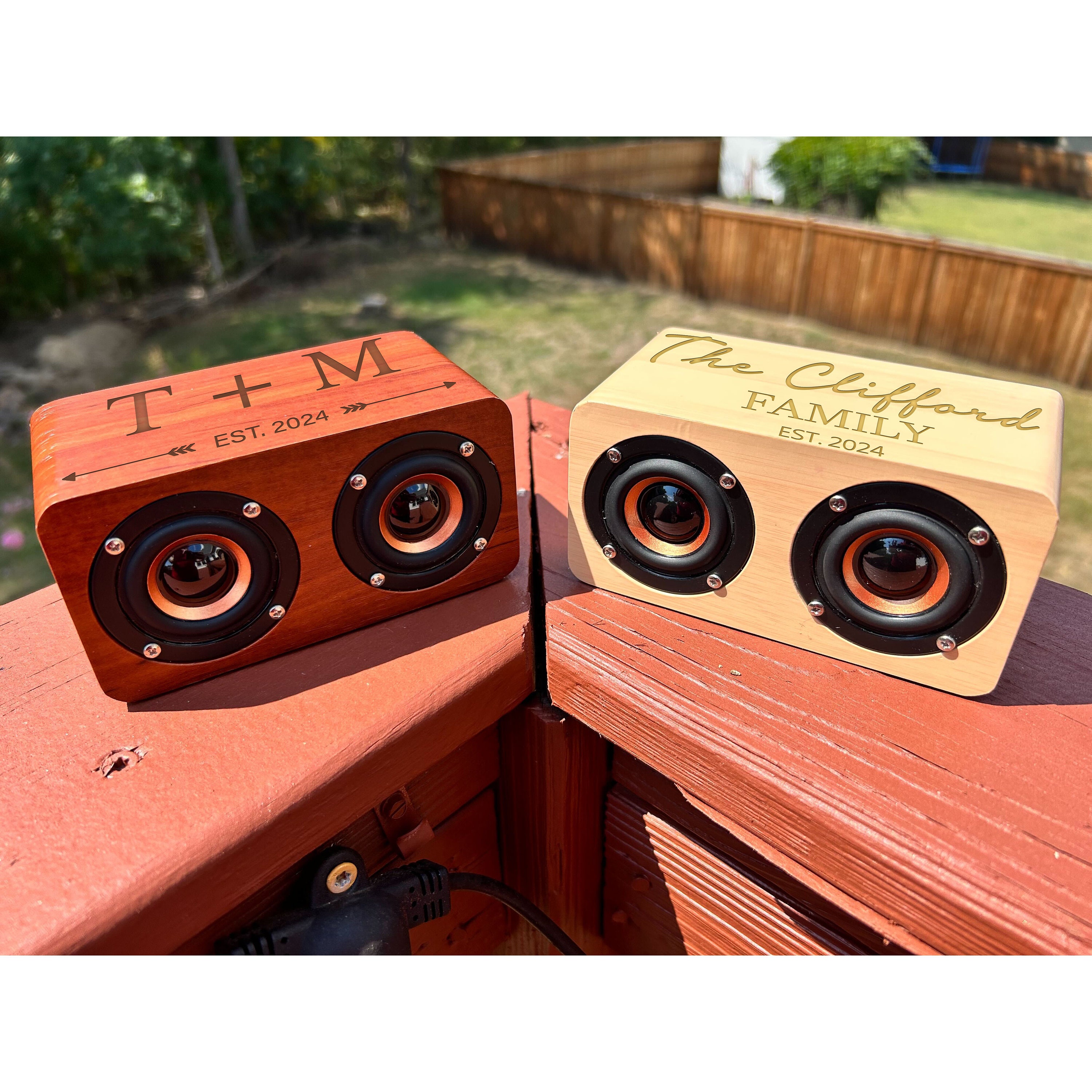 Personalized Bluetooth Speakers are the perfect gift for any occasion. Our speakers are available in two elegant finishes: Natural Wood Bamboo and Dark Walnut, making them a stylish addition to any space.