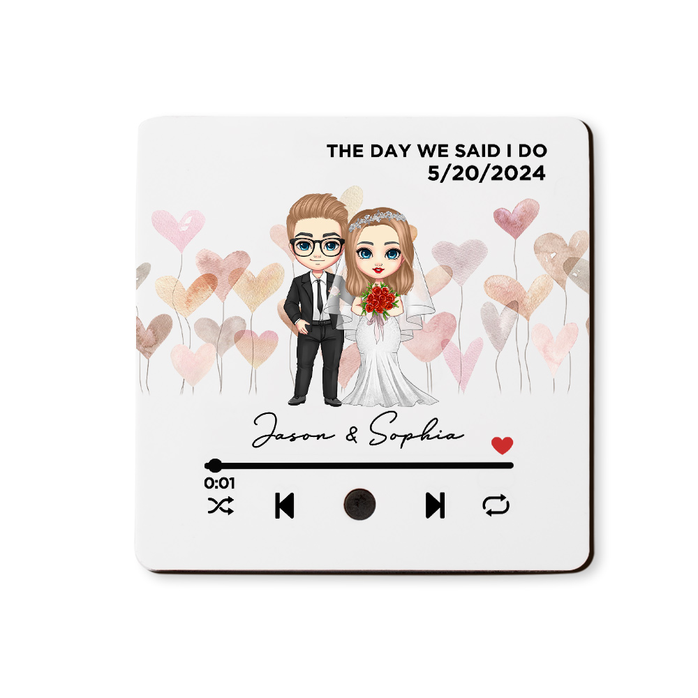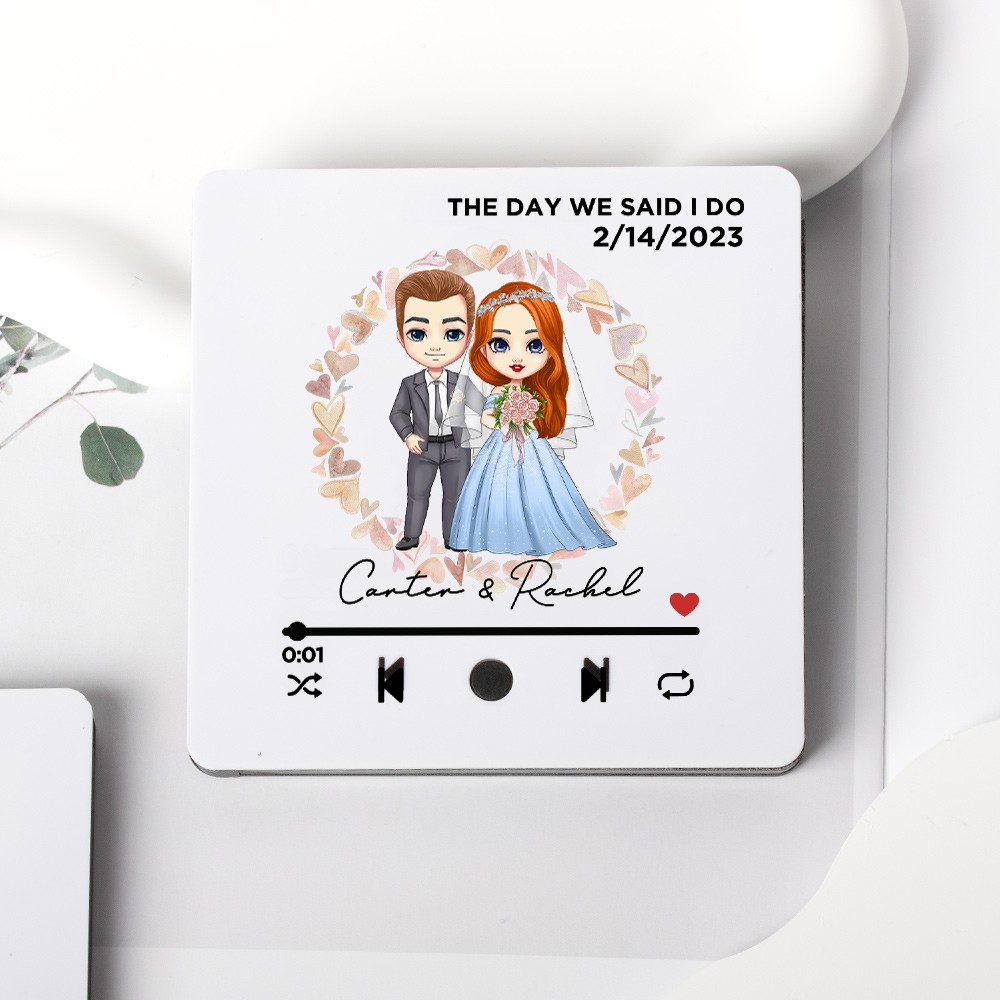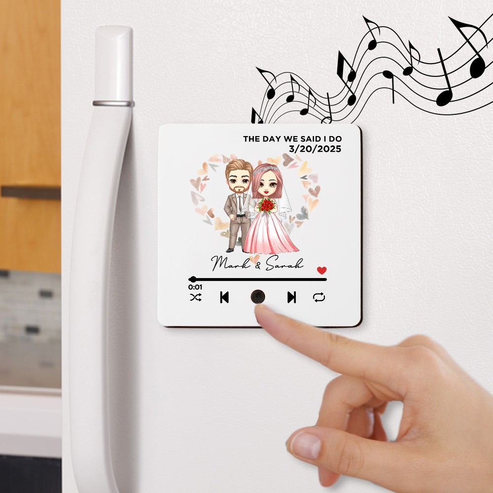 Personalized Bride and Groom Song Plaque Fridge Magnet with Wedding Date and Name, Music Player Refrigerator Magnet, Anniversary Gift for Couple