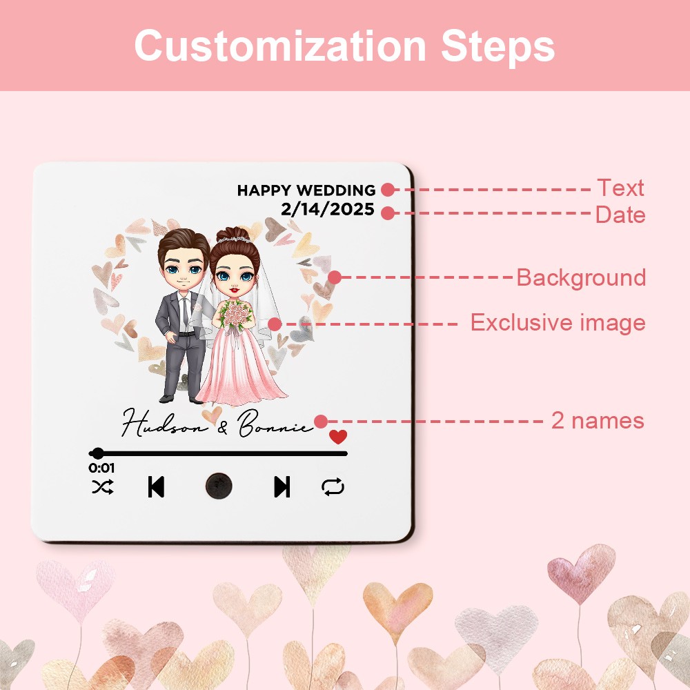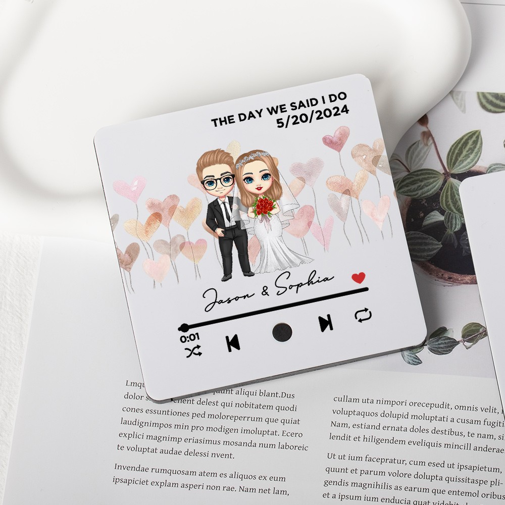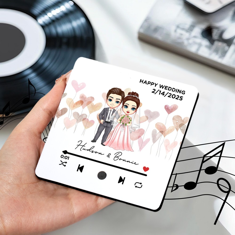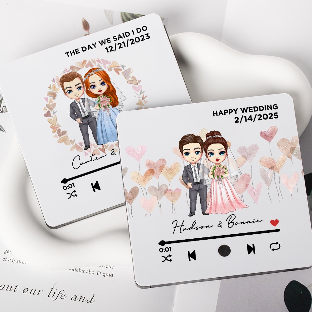 Personalized Bride and Groom Song Plaque Fridge Magnet with Wedding Date and Name, Music Player Refrigerator Magnet, Anniversary Gift for Couple